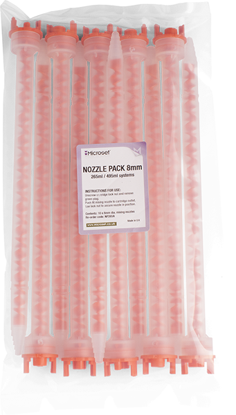 Pack of 10 mixing nozzles (8mm internal diameter). Required for air free mixing of Microset compounds.
