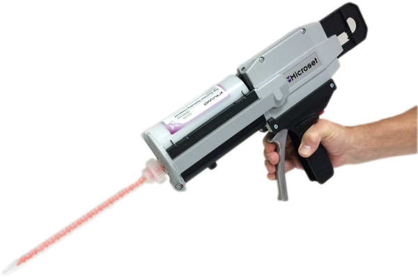 Manually operated tool for dispensing MICROSET 265ml Cartridges.