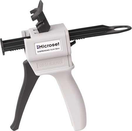 Plastic re-usable tool for dispensing MICROSET 50ml cartridges.