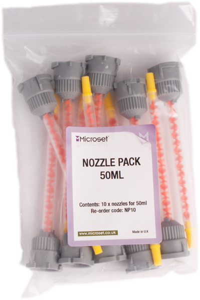 Pack of 50 static mixing nozzles required for air free mixing of MICROSET compounds.
