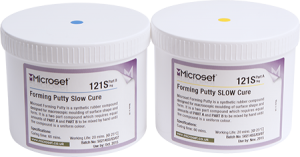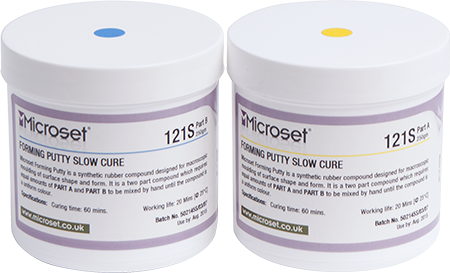 Two part, high viscosity, compound for macroscopic moulding of surface geometry.
